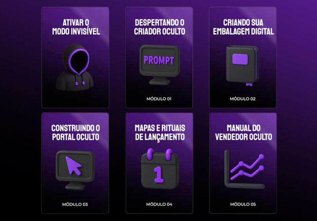 Mas isso não significa que você não possa criar, vender e viver do digital. Com o Kit Oculto, você transforma ideias simples em produtos reais, e aprende a vendê-los sem precisar aparecer.